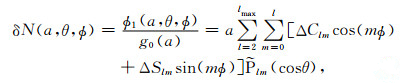 在球坐标系中,在点(rθΦ)现今引力位变化写成: