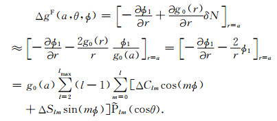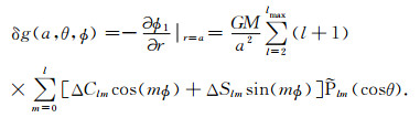 从式(1),可推导重力扰动变化公式: