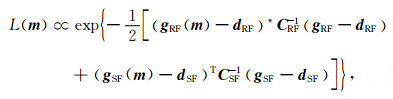 根据贝叶斯反演理论[32, 33],模型空间的后验概率密度可表示为
