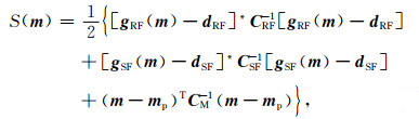 这里,g(m)为正演算子,d为观测数据矢量,m为模型参数矢量,*表示复共轭,T表示转置,而下标RF和SF分别表示接收函数和面波相速度频散,下标p表示先验信息.CRF和CSF分别为接收函数和面波相速度频散的数据协方差矩阵.CM为先验模型的协方差矩阵.