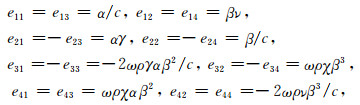 其中,elk为层矩阵的元素(l=1,2,3,4;k=1,2,3,4),这里,上标表示地壳模型的层序号,下标表示矩阵元素.式(1)中Λu1(0)为的地壳模型第1层深度为零时的相位延迟矩阵,