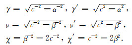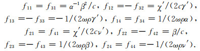 这里,α和β分别为介质层的P波和S波速度,ρ为密度,c为相速度,ω为角频率,并有