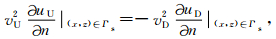其中uU,uD分别为内部边界Γs上面和下面的波场值,vU,vD分别为内部边界Γs上面和下面的介质波速,p是满足