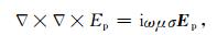 where μ is the air magnetic permeability, ω is the angular frequency, σ is the conductivity (the inverse of resistivity, ρ), E is the electric field, and H is the magnetic field, the time dependence for E and H is e-iωt.