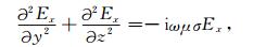 Fig. 3 shows the apparent resistivity curves obtained with equation (7) in the TM mode in comparison with the analytic solutions. It indicates that the curves above the high resistivity abnormity coincide well with the analytic solutions.