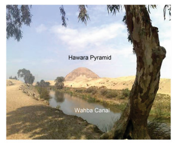 Fig. 3 View of Hawara pyramid and Wahba canal which splits the area into two parts |