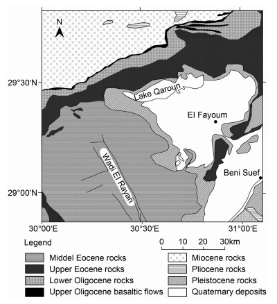 Fig. 4 Geologic map of El-Fayoum area (modified after Swedan,1986[14]) |