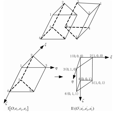 图 2 平行五面体单元的变换 Fig. 2 Coordinate transformation for parallel tri-prism elements |
