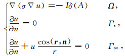 其中,u代表电位,I是供电电流强度,σ为介质的电导率,r为电源点A到测点的距离,n是边界的外法向向量,Ω是研究区域,Γs为研究区域的地面边界,Γ∞为研究区域的地下边界.