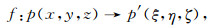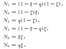 五面体的六个顶点记为; pi(xi,yi,zi)(i=1,2,…,6),定义仿射坐标变换;