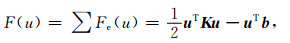 将(2)式中右端各项离散成单元积分之和,单元的电位列向量ue扩展成全体节点的电位列向量u,将6×6的单元刚度矩阵扩展成单元系数矩阵,全部单元系数矩阵相加,得到