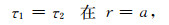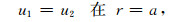 在孔隙介质1和2的分界面r=a处, 由法向总应力连续和孔隙流体压力相等有: