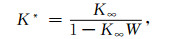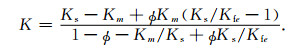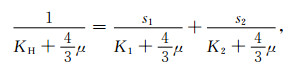 对于图 1中含有两种孔流体的孔隙介质, 在低频极限的情况下, 其等效的流体体积模量和各组分流体之间存在如下关系[18]: