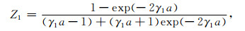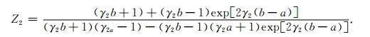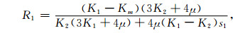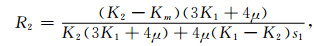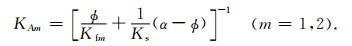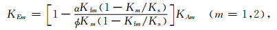 同前面提到的一样, 下标m代表图 1b中孔隙介质类型.(A7)中变量KEm、KAm表达如下: