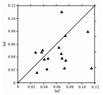 图 4 磁组构对数Flinn图解 Fig. 4 Flinn-type plot of lnL vs. lnF |