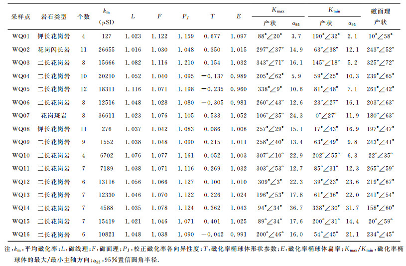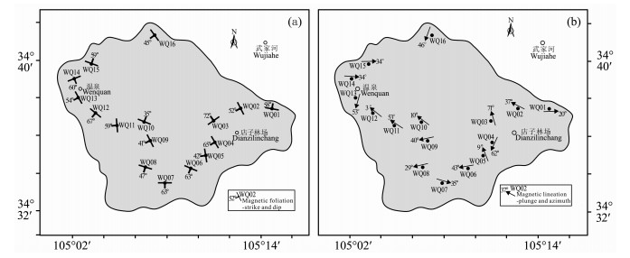 表 1 西秦岭温泉岩体磁组构参数 Table 1 Magnetic fabric data of the Wenquan pluton in the western Qinling Mountains |