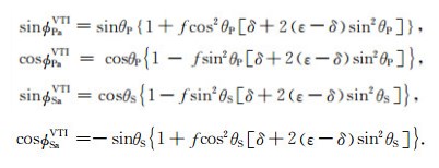 同理根据Thomsen弱各向异性假设,经过运算和整理,最终得到qP波弱各向异性近似偏振方向(sinφPa,cosφPa):