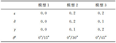 6 数值试例为了验证精确和近似公式的正确性和有效性,设计了一组均匀各向同性介质、椭圆各向异性介质、VTI介质和TTI介质模型.所有模型相同的参数为VP0=3000m/s、VS0=1500m/s和ρ=2000kg/m3,不同的是各向异性参数ε、δ、γ和对称轴极化角θ0,如表 1所示.对于所有模型,VTI介质的θ0=0°.模型1是各向同性介质,模型2是椭圆各向异性介质,模型3是ε-δ>0的TI介质.