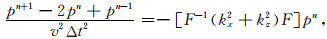 则波场空间二阶导数的计算可将(7)式乘-kxkx后做反傅里叶变换得出: