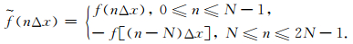 为了计算得到反周期波场,需要扩展长度为N的函数f(nΔx)为(6)式,其长度增加为2N: