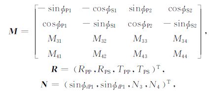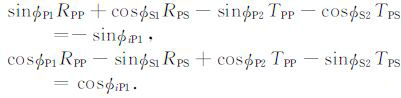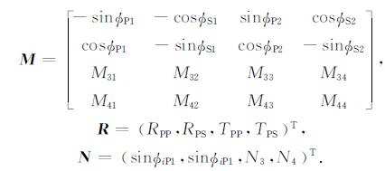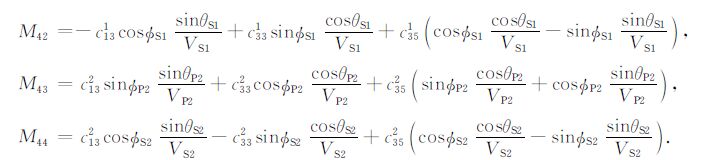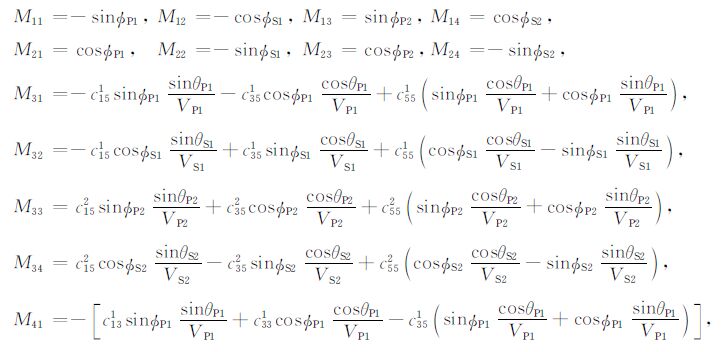 附录将入射波、反射波和透射波的波函数带入应力连续和位移连续边界条件,整理可得TTI介质qP波入射的拟Zoeppritz方程: