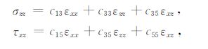 可求得二维情况下,应力σzz和τxz与应变εxx,εzz和 εxz的关系: