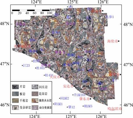 图 10 松辽盆地北部滨北地区基岩岩性预测分布图 Fig. 10 Predicted distribution plane of basementlithology in Binbei area,north Songliao basin |
