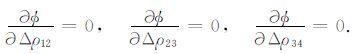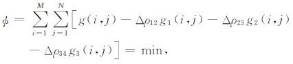 g(i,j)为重力异常,Δρ12为1、2两层界面的密度差,g1(i,j)为1、2界面重力效应权函数,Δρ23为2、3两界面密度差,g2(i,j)为2、3界面的重力效应权函数,Δρ34g3(i,j)为3、4两界面密度差,g3(i,j)为3、4界面的重力效应权函数.