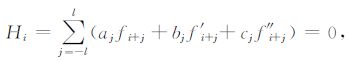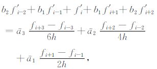 其中,Hi表示以xi点为中心的差分格式,l表示此格式向左向右延伸的网格点数,aj,bj,cj是待定系数,fi,f′i,f″i分别表示xi点上的函数值f(xi)及其一阶导数值f′(xi)和二阶导数值f″(xi).下面介绍如何利用公式(8)获得函数在节点处的一阶导数和二阶导数插值近似公式.