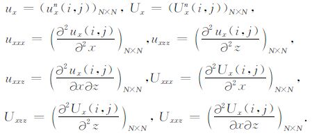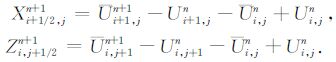 设以等步长h剖分计算区域,时间步长为Δt,uxn(i,j)表示ux(ih,jh,nΔt),Uxn(i,j)表示Ux(ih,jh,nΔt),记