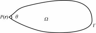 式中Ω=Ω +Γ,C(r)=$\frac{\theta }{2\pi }$,θ为角点P(r)对区域Ω 的张角(如图 2所示).