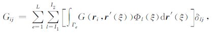 其中,δlj和δij为Kronecker脉冲函数.上述离散单元积分可利用高精度的高斯积分数值算法计算.方程(7)可改写为算子的形式: