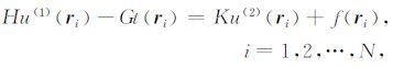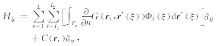 例如H00为利用公式(9)计算得到的边界Γ0 上的各个离散点对其上的其他离散点的相互作用积分算子矩阵,即