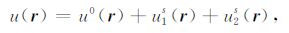 式中k=ω/v(r)为波数.地震波场u(r)可表示为入射波场u0(r)、边界散射u1s(r)和体积散射u2s(r)三项之和,即