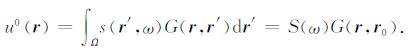 其中第一项u0(r)为背景介质中的入射波场,考虑点源激发,则u0(r)可表示为