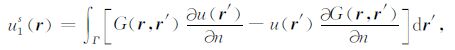 第二项u1s(r)为起伏地形及近地表结构中的不规则边界贡献的边界散射波场,满足如下均匀背景介质中的边界积分方程: