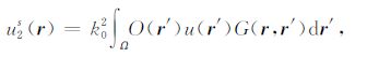 式中,∂/∂n为边界法向导数.第三项u2s(r)为非均质低降速层产生的体散射波场,满足如下的Lipmann- Schwinger体积分方程: