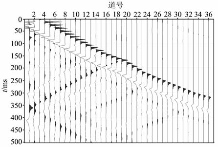 图 6 修正后的正演震源深度为350m 时的记录 Fig. 6 The whole wavefield by modified formula with source of 350 m underground |