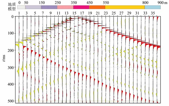 需要注意的是,该方法只适用于法线入射的情况.对于非法线入射情况下的VSP 合成记录,将在界面上出现P波和S波,并出现波型的转换.Haskell提出了在频率域进行矩阵迭代运算的方法[19],但该方法要求频率极高的采样率以避免假频;Aminzade提出利用逆τ-p变换进行不同入射角的VSP 地震记录合成[20].这将是下一步的研究方向.