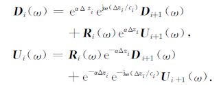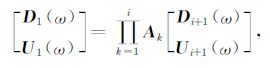 将公式(2)代入公式(1),则上一层地震波的传播Di(ω)、Ui(ω)可以由下一层地震波的传播Di+1(ω)、Ui+1(ω)表示为