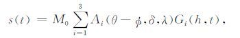 其中,i=1,2,3 分别对应三种地震断层模型:垂直走滑断层(vertical strike-slip),垂直倾滑断层(vertical dip-slip),以及45°倾滑断层(45°dip-slip),Gi为格林函数,Ai为辐射系数,θ为台站方位角,Φ,δ,λ 分别为震源机制解的三个参量:走向,倾角,滑移角,M0 为地震矩[32].