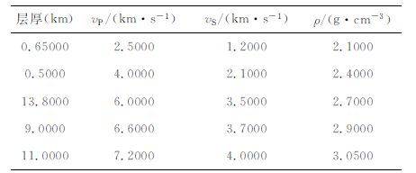 表 1 震源地区地壳结构分层模型 Table 1 Layered crustal velocity model for epicenter region |