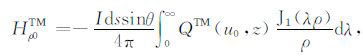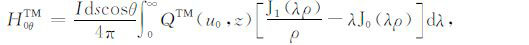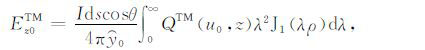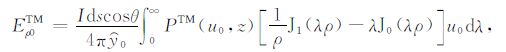 根据上边的TM 和TE 模式的电磁位函数(42)和(45)式,代入(10)—(13)式便可得海水层中电磁场关系:
