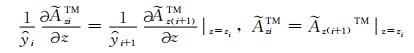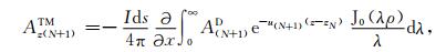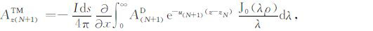 从最底层半空间开始,直到海水与空气的界面相关的各层的电磁位关系代入(A12)式,且令z⌒i=iωμ,
