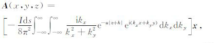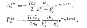 在均匀介质中,利用直角坐标系下二维傅里叶变换求解HED 激发的位函数方程(5),可以得到位函数A和F的如下关系[14-15]: