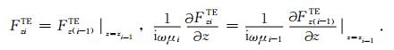 同样,由电场和磁场在空气-海水、海水和海底地层个交界面上切向分量的连续性,TE 模式电磁位函数满足如下边界条件: