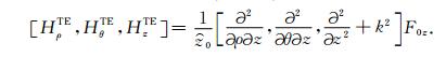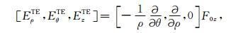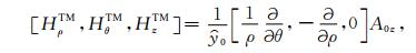 在柱坐标系下,由电磁位函数代入(3)和(4)式的柱坐标关系,得到两种模式电磁场计算关系:
