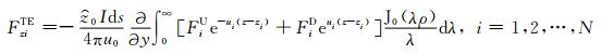 其中,FaU,F0U ,F0D ,FiU,FiD(i=1,2,…,N),F(N+1)D 分别是空气、海水层和海底地层中TE 模式波的上行、下行波反射和透射系数.