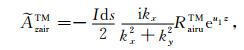 在实际勘探环境中,电磁场的TM 和TE 两种模式与空气-海水界面的相互作用,全部体现在RairTM和RairTE 两个反射系数中,它与海水深度、空气与水的电导率及激发频率有关.对于TM 模式由(38)式的反射系数定义可知: