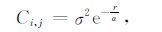 在InSAR 差分干涉图中,同时包含有大气、轨道、DEM 误差、热噪声等多种误差,这些误差对干涉相位的影响方式和量级各不相同,常规的误差估计方法难以研究干涉图的误差大小.本文假定差分干涉图中的误差(主要为残余大气效应和轨道误差)的统计特征在整个影像中具有相同的空间结构[19-20],则可以使用1D 协方差函数来描述每个Track中误差的特征(包括量级和空间尺度).研究表明,一个简单的指数函数可以很好地表征观测值的协方差函数[19-20]: